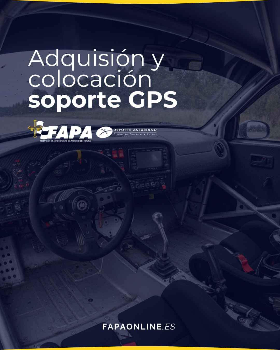 El soporte del sistema GPS para las pruebas de rallyes, rallysprint y tramos de tierra deberá adquirirse obligatoriamente de forma previa a las verificaciones técnicas de la prueba. El coste del dispositivo es de 15€ y el pago se realizará exclusivamente en efectivo al suministrador del GPS en el momento de la entrega.