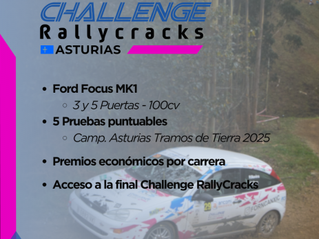 Ante el comunicado publicado hace días por el comité organizador de la Challenge RallyCracks, el cual desconvocaba esta copa, la FAPA ha decidido coger las riendas de la misma en el Principado de Asturias, creando la Focus Racing FAPA siguiendo el mismo patrón, con el Ford Focus MKI como vehículo admitido y las cinco pruebas del Campeonato de Asturias de Tramos de tierra como las pruebas puntuables, además de contar con interesantes premios por carrera y a finalizar la temporada.