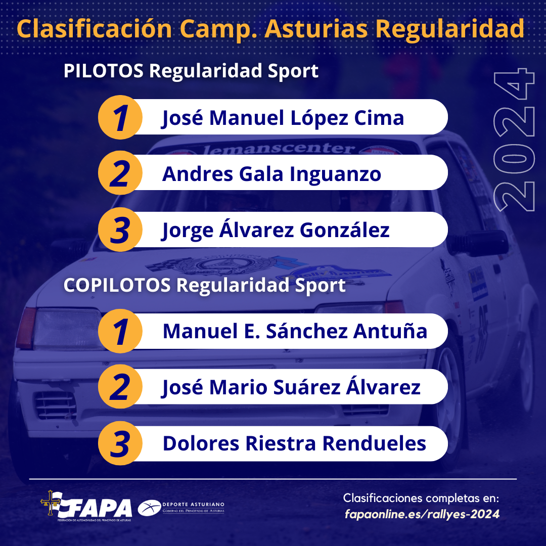 Clasificaciones finales Campeonato de Asturias de Rallyes de Regularidad 2024: https://fapaonline.es/rallyes-2024