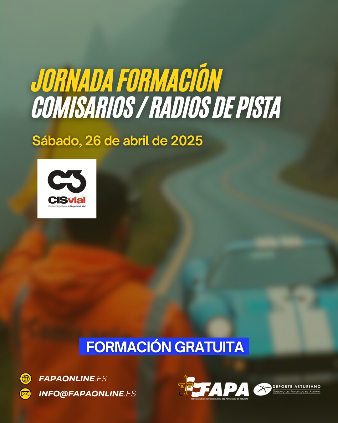 Un año más se realizará, de forma totalmente gratuita, la formación para los nuevos comisarios y radios de pista, siendo en esta ocasión durante la mañana del sábado, 26 de abril, en las instalaciones de CISVial (Langreo).