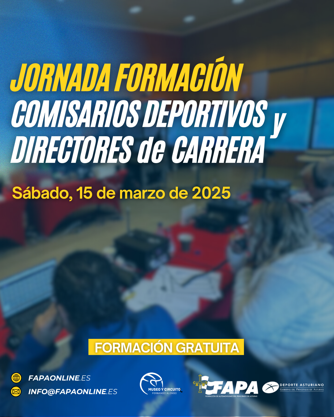 Durante el sábado, 15 de marzo de 2025, se realizará una jornada intensiva sobre dos formaciones muy demandadas ante esta federación: Comisarios Deportivos y Directores de Carrera de forma totalmente gratuita, sin ningún tipo de coste para los interesados. El lugar para esta enseñanza será el Salón de Actos del Museo y Circuito Fernando Alonso, en Cayés (Llanera).
