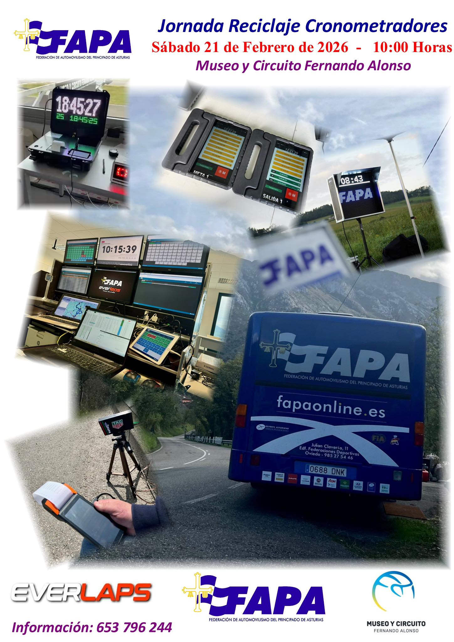 La Federación de Automovilismo del Principado de Asturias anuncia una nueva jornada de reciclaje para cronometradores que tendrá lugar el próximo sábado 21 de febrero de 2026 a las 10:00 horas en las instalaciones del Museo y Circuito Fernando Alonso.