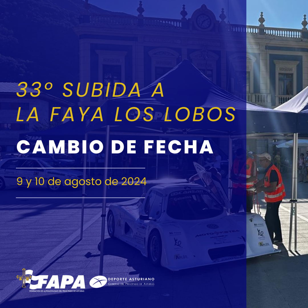 La 33ª edición de la Subida a La Faya los Lobos se aplaza para los días 9 y 10 de agosto de 2024, manteniendo las inscripciones contabilizadas hasta el momento.