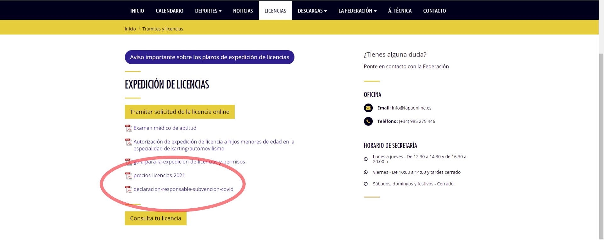 Ya se encuentra disponible en la página web de la FAPA, en el apartado licencias, la documentación necesaria para la tramitación de la misma. Se podrán empezar a solicitar a partir del día 5 de Febrero a las 12:30.