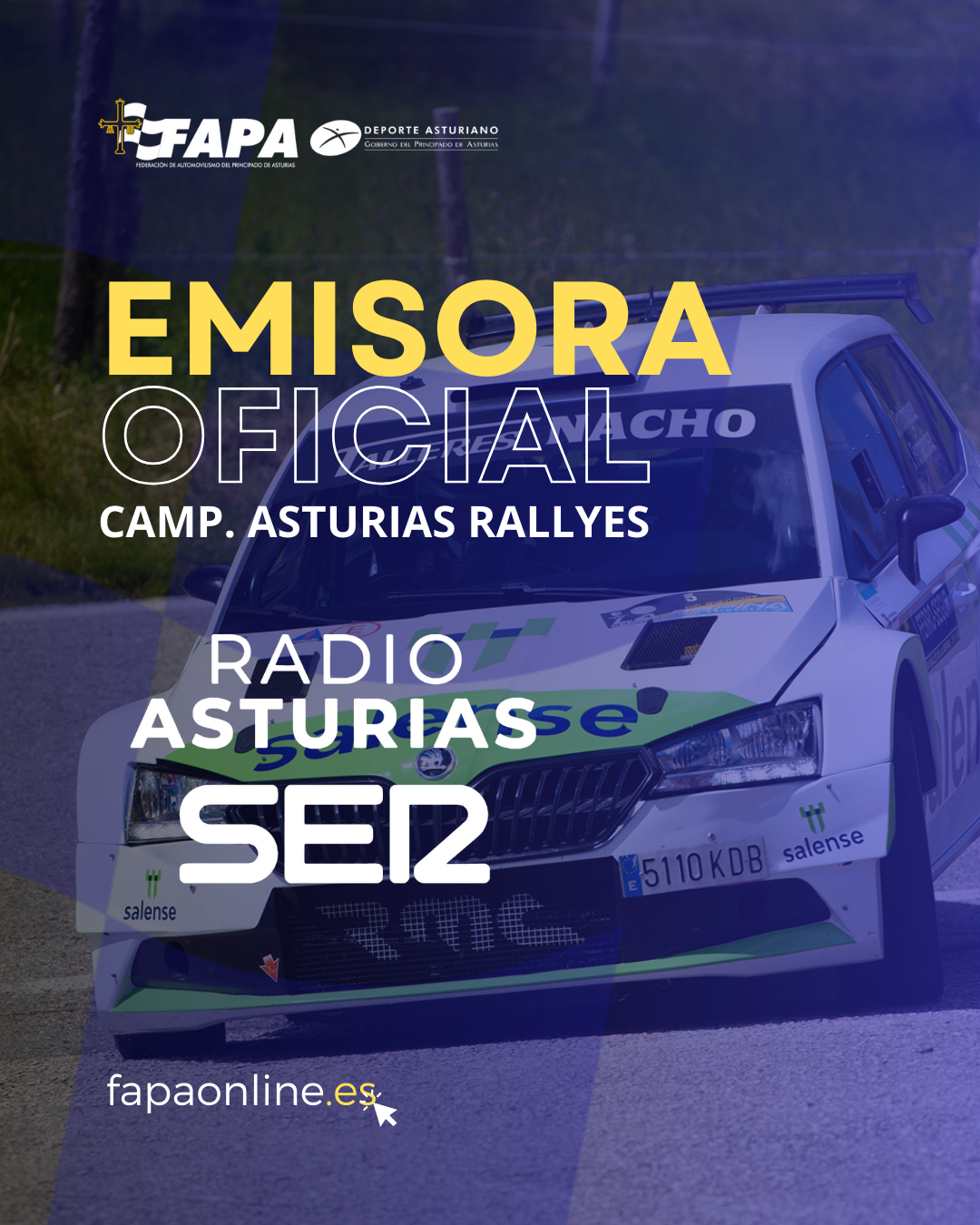 Radio Asturias Cadena SER, a través de su programa de motor, SER Motor Asturias, será la emisora oficial donde se retransmitirán en directo lo que acontecerá en las siete pruebas del Campeonato de Asturias de Rallyes: Villa de Tineo, La Espina, Picos de Europa, Virgen del Viso, Montaña Central, Ciudad de Langreo y Cangas.