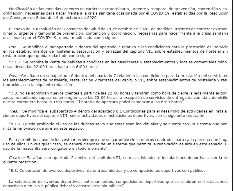 En cumplimiento de las medidas anunciadas por el Gobierno del Principado de Asturias, que hacen referencia a las competiciones deportivas sin público, que entran en vigor a las 00:00 horas del día 24/10/2020.